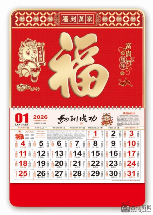 豪华长条181张精雕新工艺择吉双日历 — FG-056(马年大吉)—FG-057(马年好运)— FG-058(大吉大利)