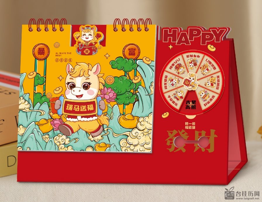 亚克力摇摇乐旋转木座台历— LD-26116(财源滚滚套装)