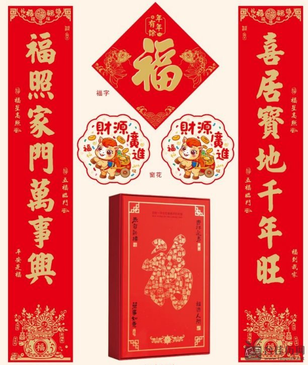 植绒满版烫金对联套装 YY018—(喜迎新春)