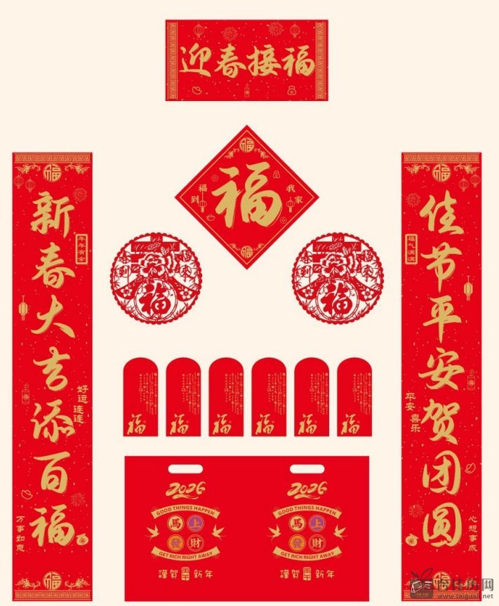 中国红防晒UV春联套装 — YY025(合家欢乐)