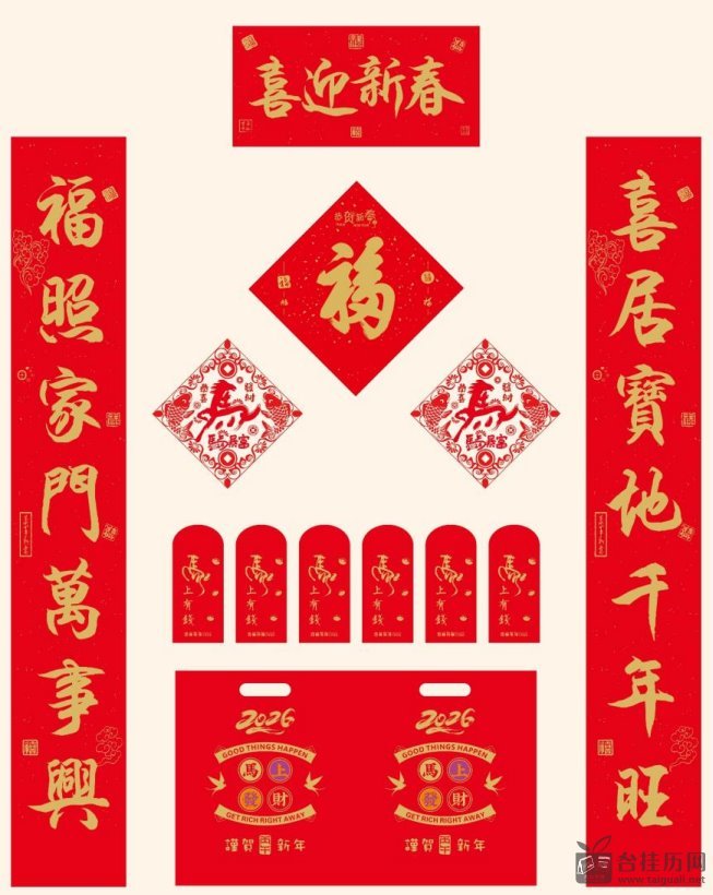 128g铜版纸彩印对联180cm — YY047(五福临门)— YY048(万事如意)