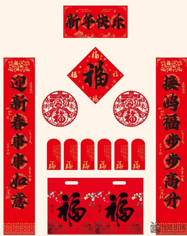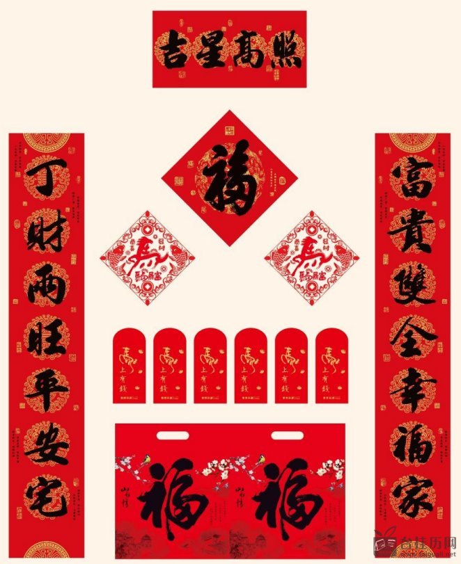 128g铜版纸彩印对联180cm — YY047(五福临门)— YY048(万事如意)