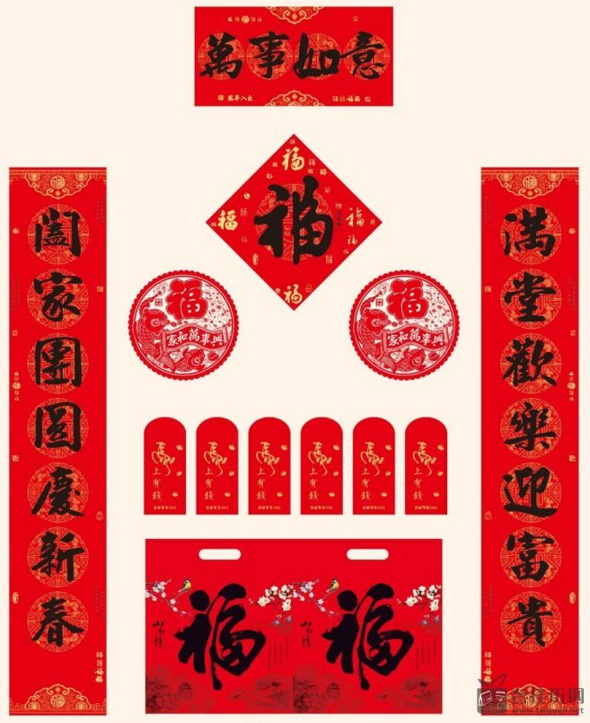 128g铜版纸彩印对联180cm — YY047(五福临门)— YY048(万事如意)
