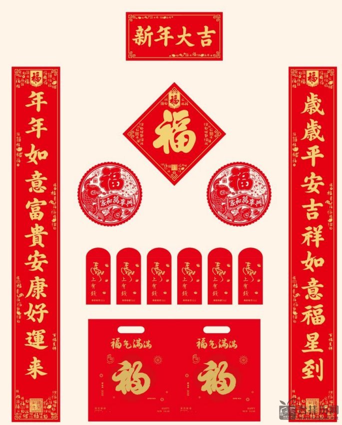 128g中国红防晒对联220cm — YY071(新年大吉)— YY072(五福临门)
