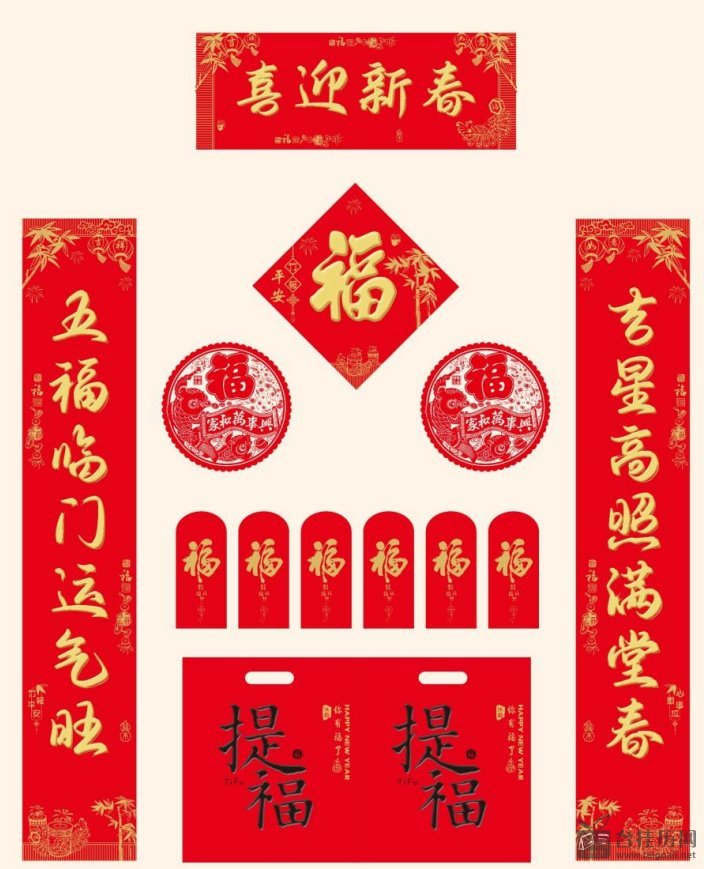 1.5米精美浮雕烫金对联系列 (五福临门)
