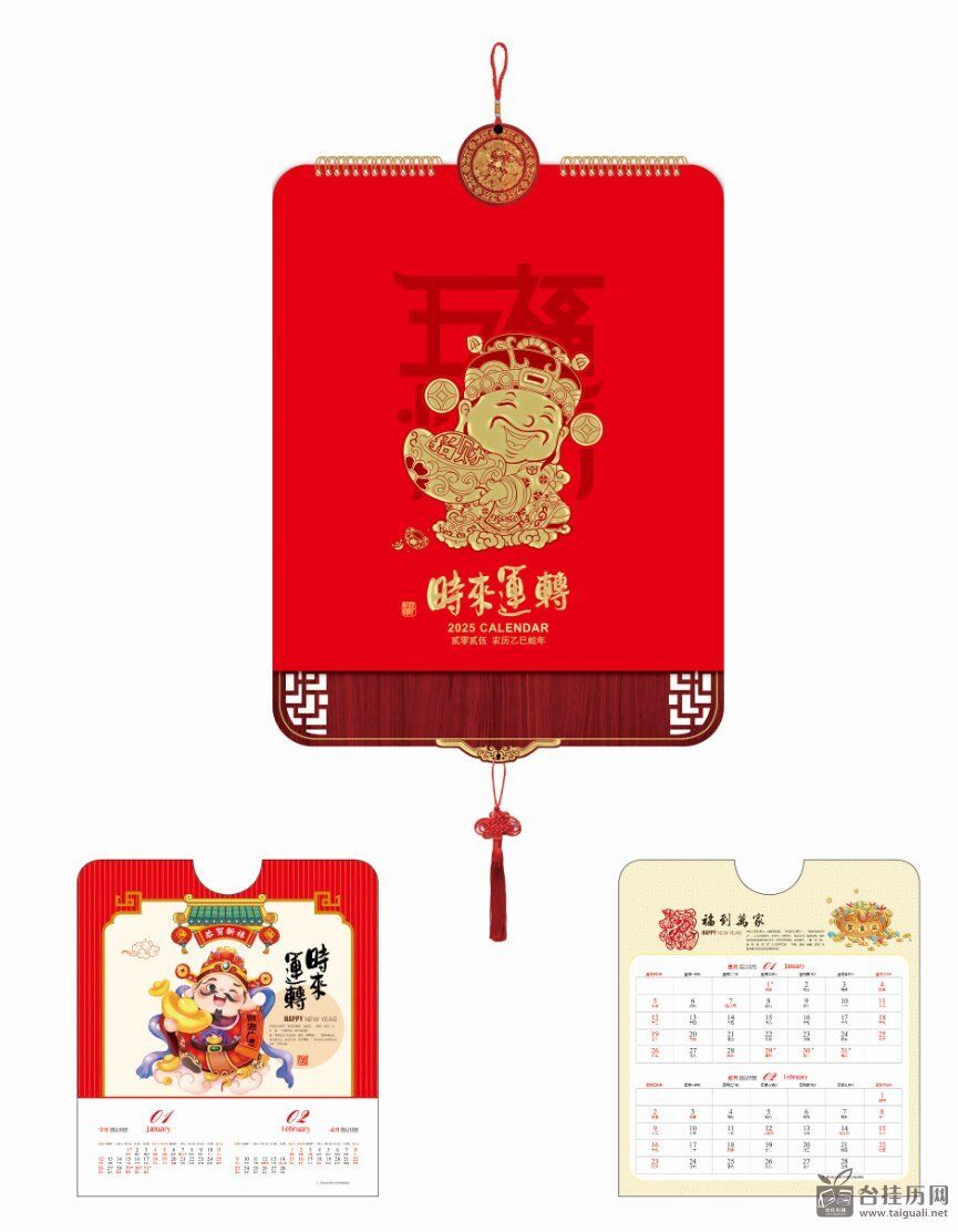 高级棕红衫木纹金雕工艺彩色吊历 ABA-25002 (时来运转)