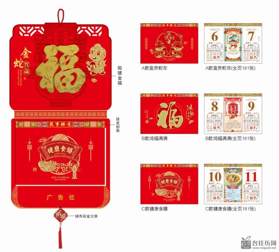 特度九开镀金金雕择吉双日撕历 ABA-25024 (金蛇贺岁 A-B-C款)