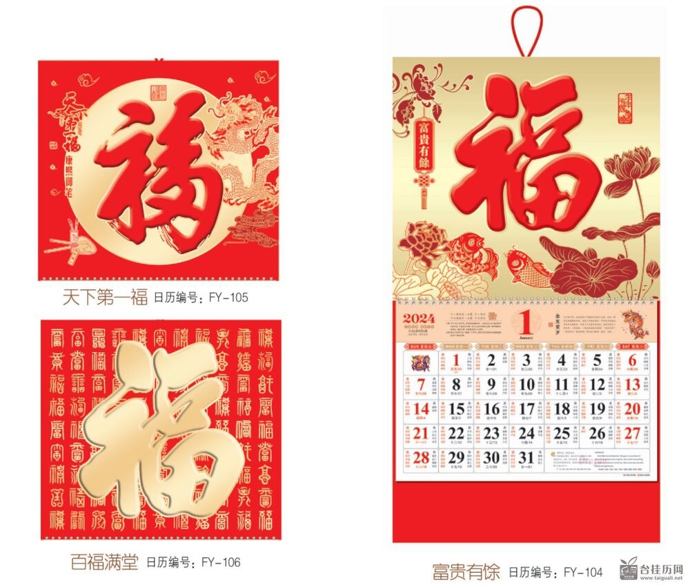 和瑞祥精品四方形周历 XY-26033(马年大吉)—XY-26034(福满财旺)—XY-26035(平安喜乐)—XY-26036(大吉大利)