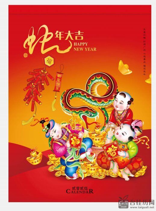 对开十三张铜版纸月历 LG-25055(蛇年大吉)