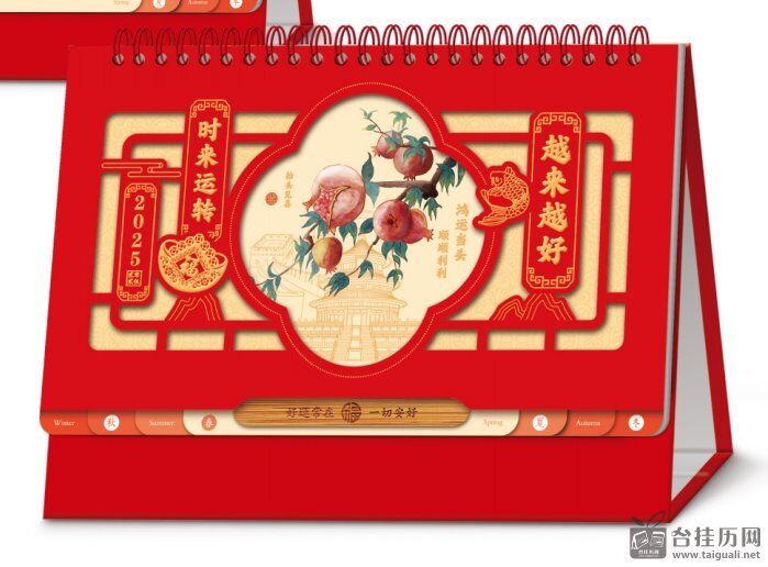 精品荧光红双层镂空台历 XY-26112(越来越好)—XY-26113(柿事如意)—XY-26114(好远常在)—XY-26115(福暖四季)