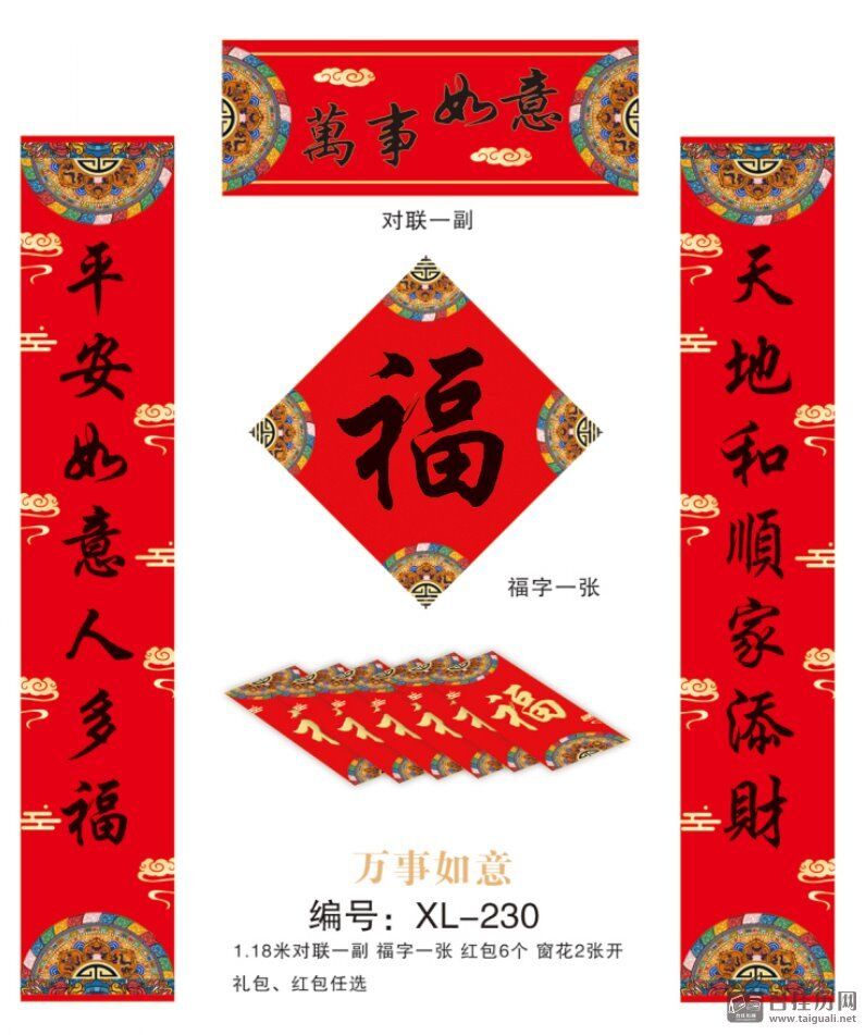 157克精美荧光红工艺对联套装 XL-229(四季兴隆)——XL-230(万事如意)