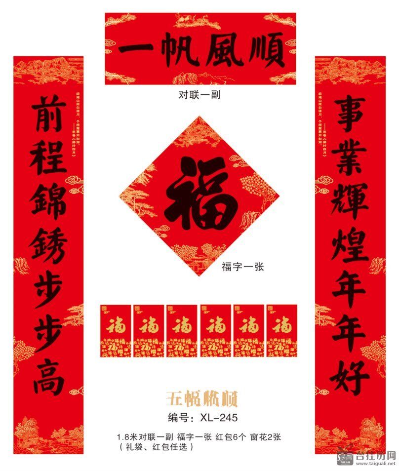128克铜版纸四色印刷对联套装 XL-245(一帆风顺)