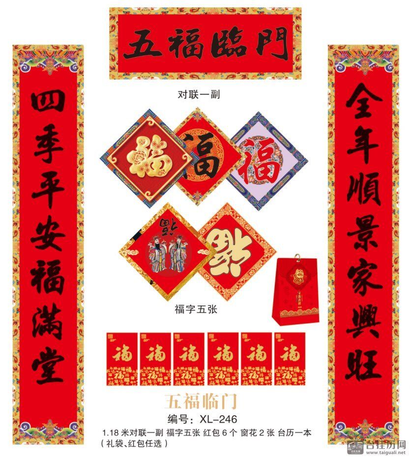128克铜版纸四色印刷对联套装 XL-246(五福临门)