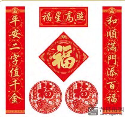 植绒双色烫金工艺对联套装 HL-003(福星高照)——HL-004(迎春纳福)