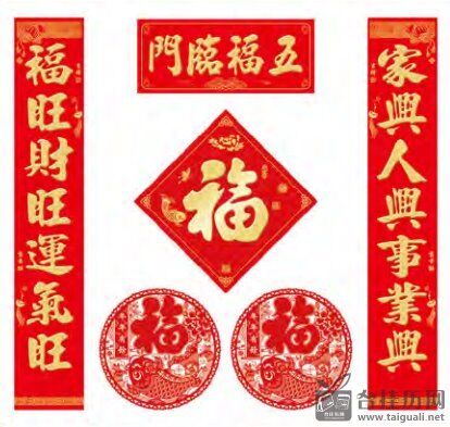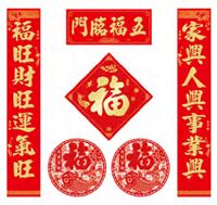 触感中国红飘金烫金工艺对联套装 HL-007(福星高照)——HL-008(五福临门)