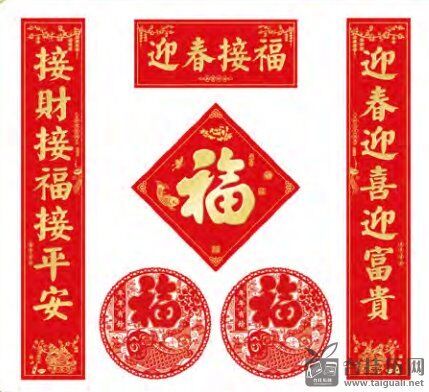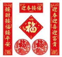 触感中国红飘金烫金工艺对联套装 HL-011(喜迎新春)——HL-012(迎春接福)