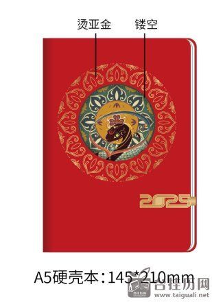 A5硬壳搭扣本:触感PU皮料,成品尺寸145*210。 加可收纳票据袋。搭扣专版开模 工艺:封面镂空+立体烫金