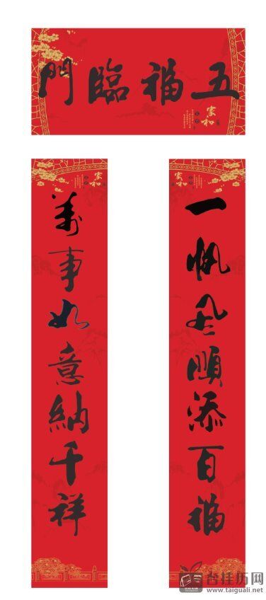 对联:尺寸:210*1180mm,128g中国红触感纸印刷