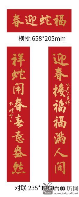 横批*1:65.8*20.5cm 157g中国红飘金纸烫金。