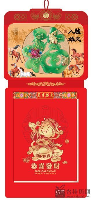 特度竖式九开精品立体单日撕历 ABA-26125(八骏雄风)—ABA-26126(马年鸿运)—ABA-26127(万事顺意)—ABA-26128(马到功成)—ABA-26129(钱多福多)