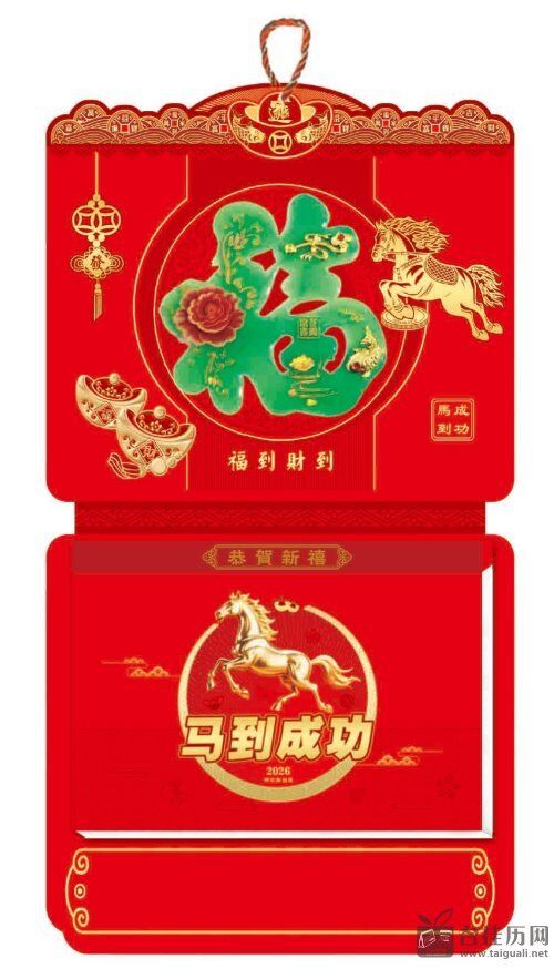 九开荧光立体福通胜双日历 FY-025(马到成功)—FY-026(健康养生)