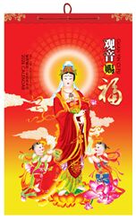 特度长三开七张镜光七彩水晶工艺挂历 — AC-011(马到成功)— AC-012(观音赐福)