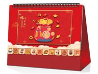 精品荧光红立体精雕台历 XY-26096(马迎福至)—XY-26097(平安喜乐)—XY-26098(福运满年)—XY-26099(柿事如意)