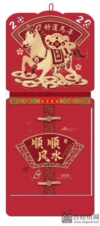 八开竖式中国红浮雕双日历港通皇历(彩贴)— AC-076(好运马年)