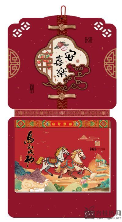 十六开特种纸浮雕立体双日历港通皇历— AC-085(马到成功)— AC-086(平安喜乐)