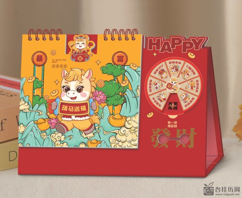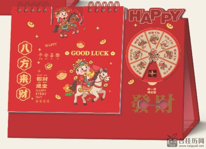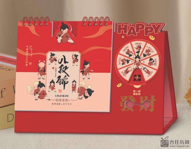 十四张时来运转艺术台历— WB-26026(瑞马送福)— WB-26027(八段锦)— WB-26028(发财被爱)— WB-26029(八方来财)