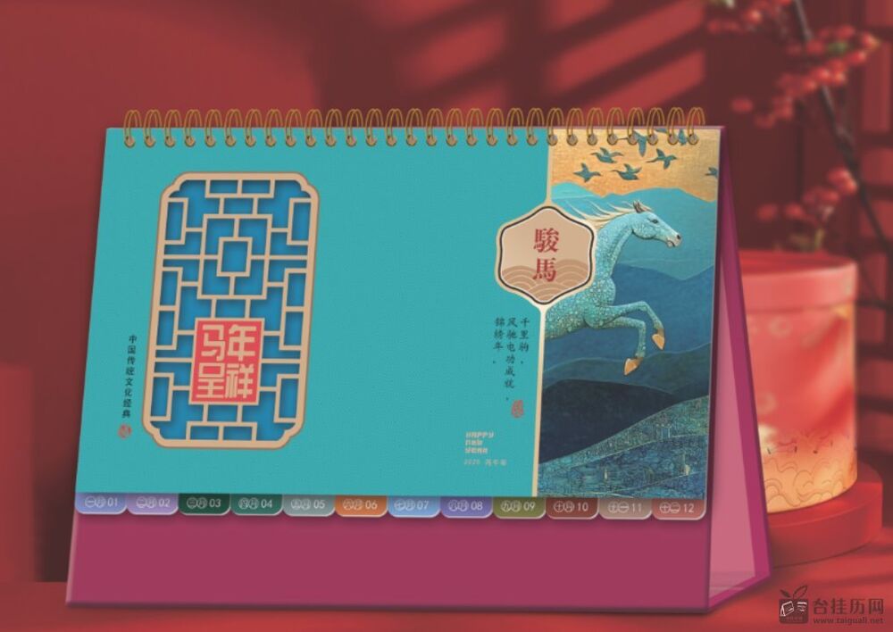 十四张紫韵高雅艺术台历— WB-26046(马年呈祥)— WB-26047(迎春纳福)— WB-26048(万事大吉)— WB-26049(故宫品鉴)
