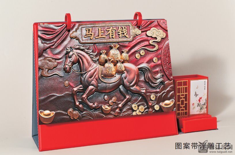 精品荧光红立体精雕台历 XY-26096(马迎福至)—XY-26097(平安喜乐)—XY-26098(福运满年)—XY-26099(柿事如意)