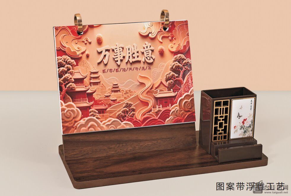 木质双环浮雕台历— HF-8013