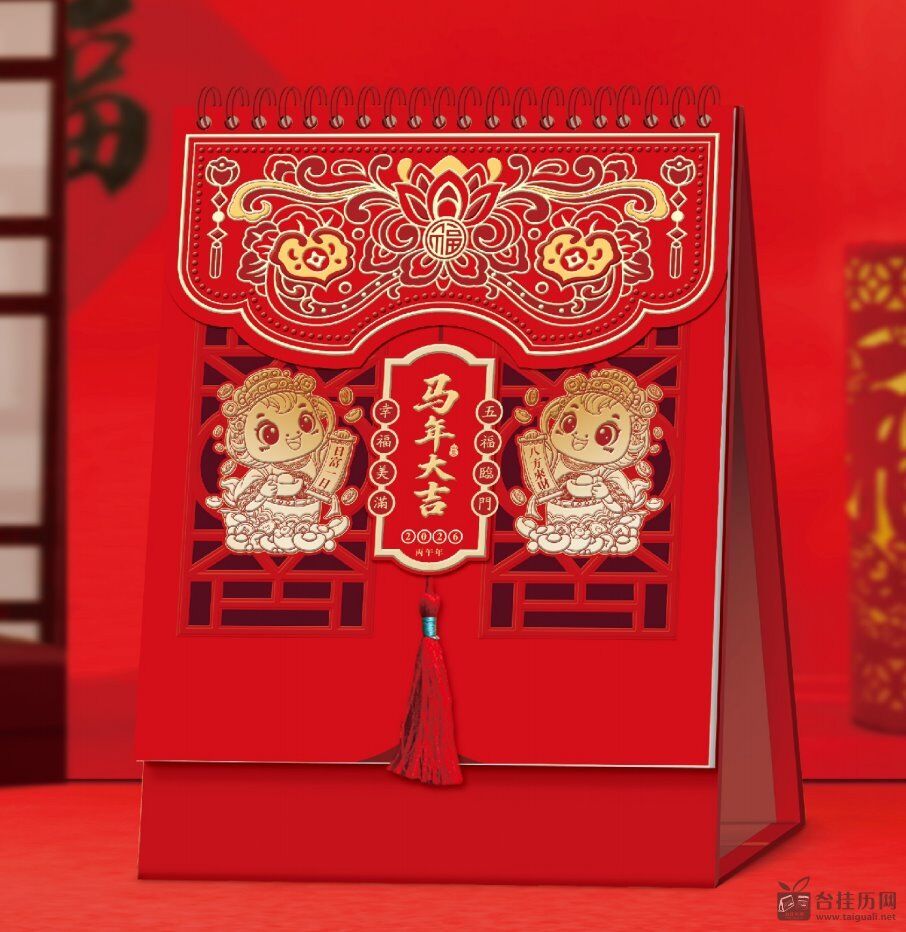 精品荧光红立体精雕台历 XY-26096(马迎福至)—XY-26097(平安喜乐)—XY-26098(福运满年)—XY-26099(柿事如意)