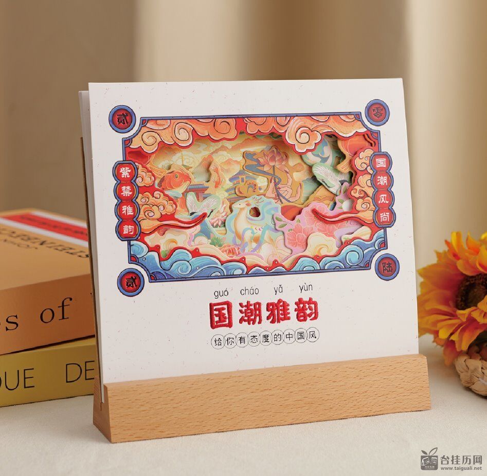 十三张韵画特种纸木座台历— LD-26112(国潮雅韵)