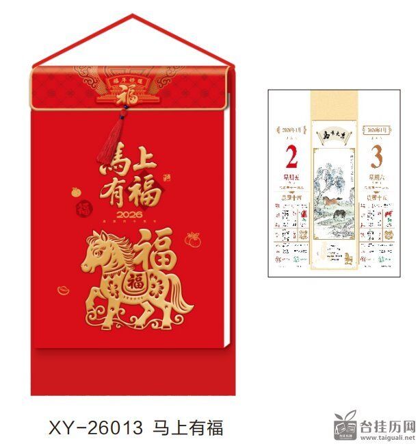和瑞祥精品182张竖九开双皇历 XY-26013(马上有福)—XY-26014(福到我家)