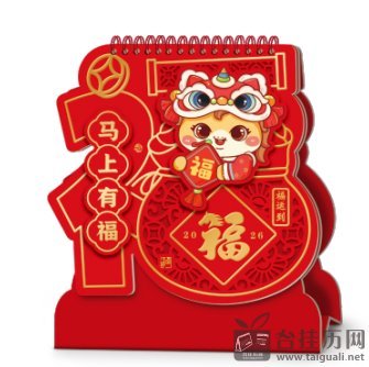 精品荧光红立体精雕台历 XY-26096(马迎福至)—XY-26097(平安喜乐)—XY-26098(福运满年)—XY-26099(柿事如意)