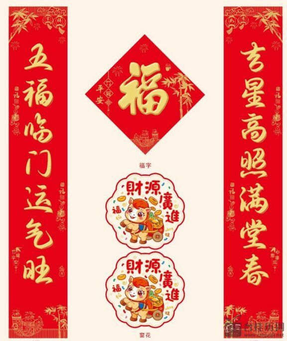 星雨飘金满版烫金对联套装 YY014—(喜迎新春)