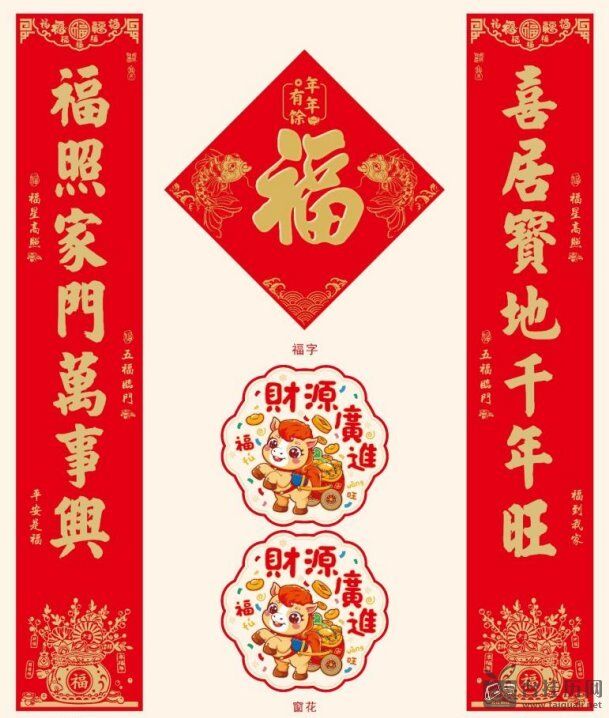 植绒满版烫金对联套装 YY018—(喜迎新春)