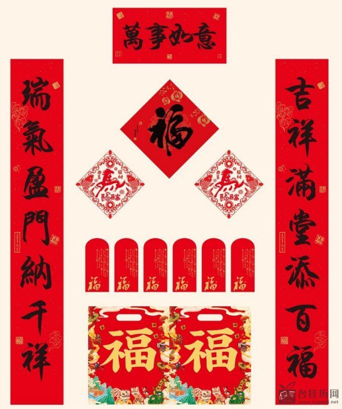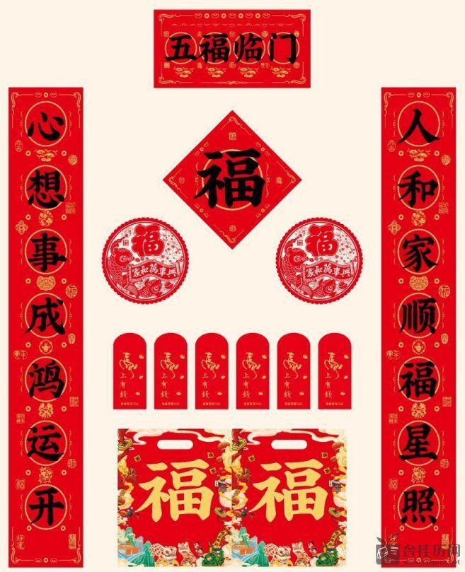 128g铜版纸彩印对联180cm — YY047(五福临门)— YY048(万事如意)
