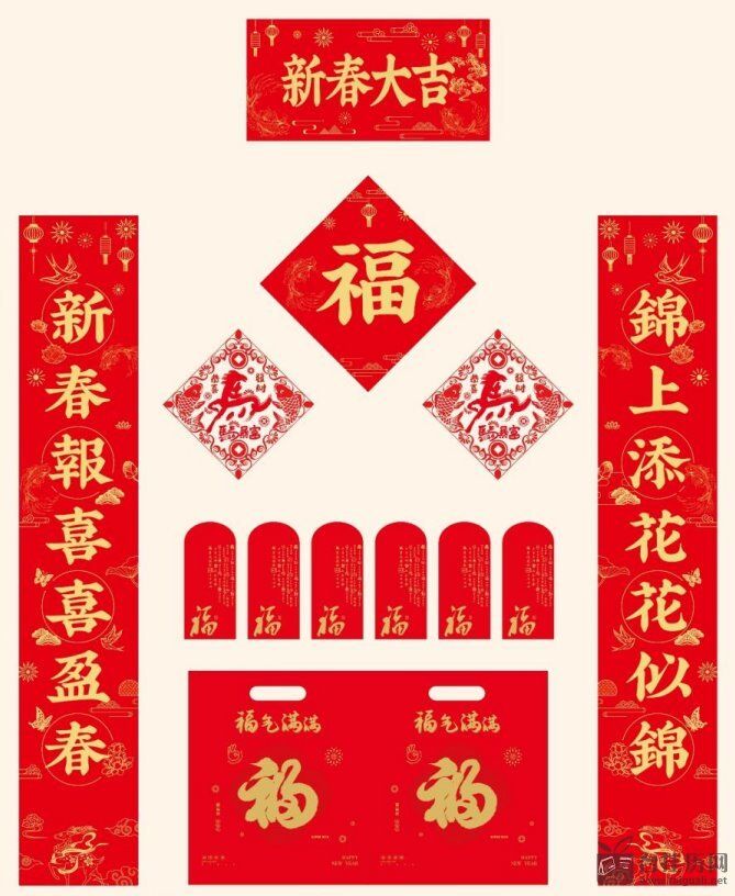 128g中国红防晒对联118cm — YY055(富贵平安)— YY056(新春大吉)