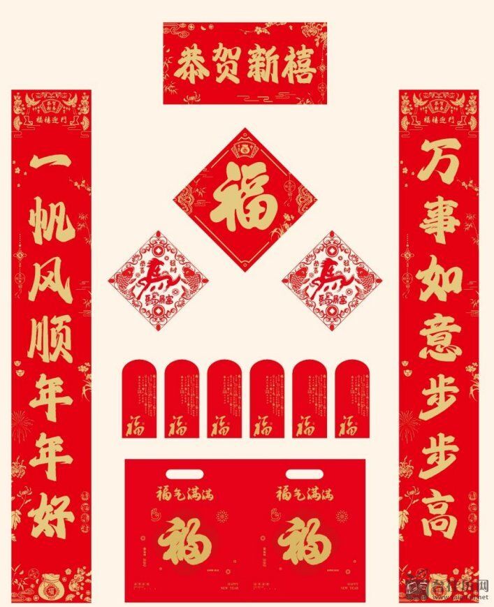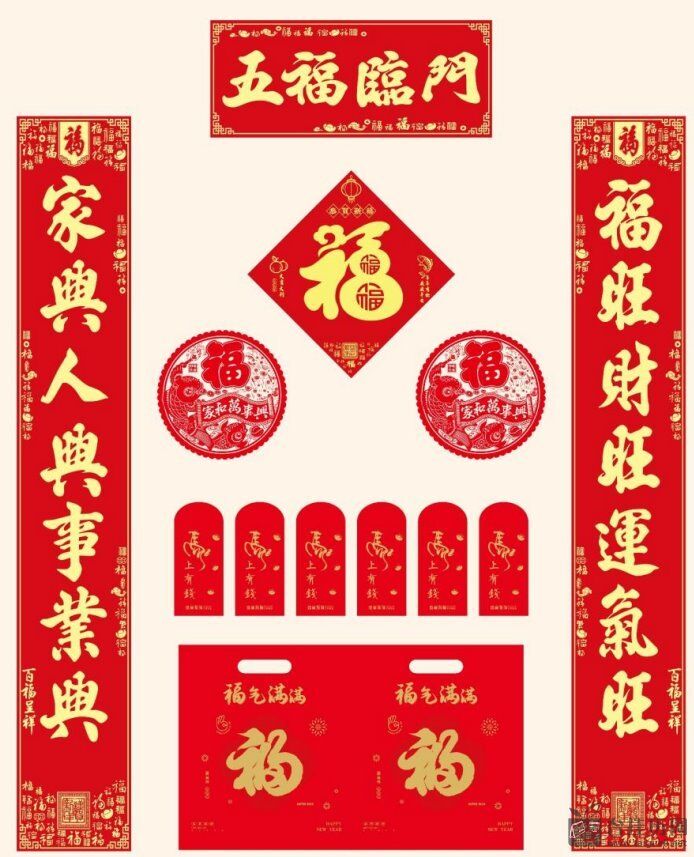 128g中国红防晒对联180cm — YY067(五福临门)— YY068(恭贺新禧)