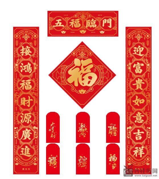 1.5米精美浮雕烫金对联系列 (五福临门)