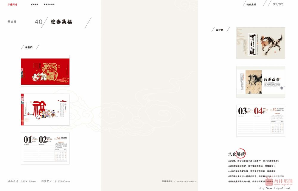 产品名称:迎春集福 中号双日历108张