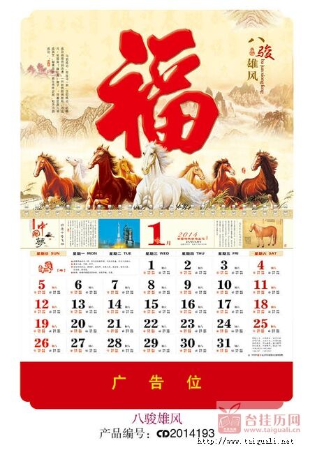 产品名称:八骏雄风 豪华大度四开银光艺术财福精品吊牌
