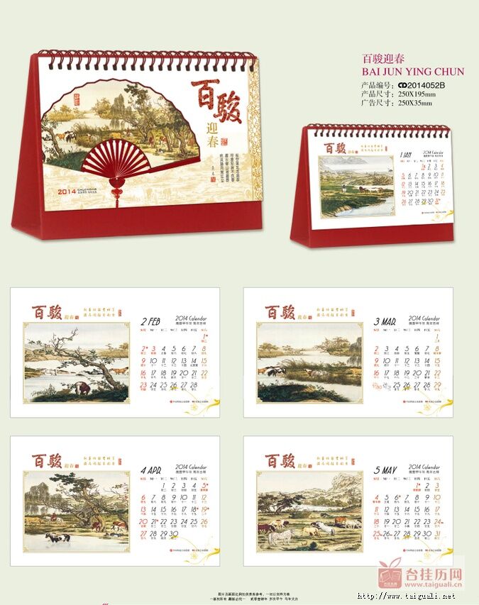产品名称:百骏迎春 经典实用新型创意艺术台历(三角形架)