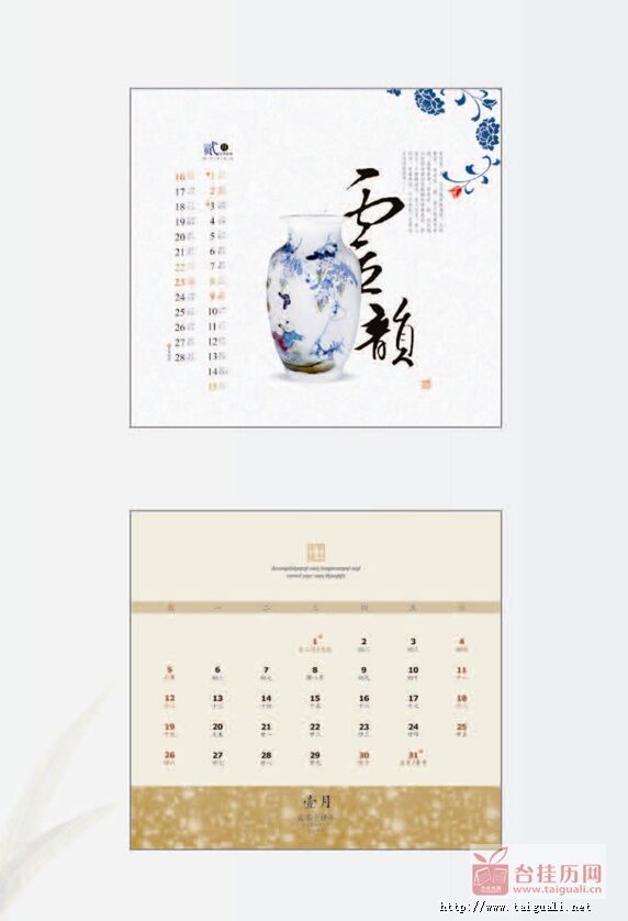 产品名称:青花瓷语 小号台历 十三张艺术台历