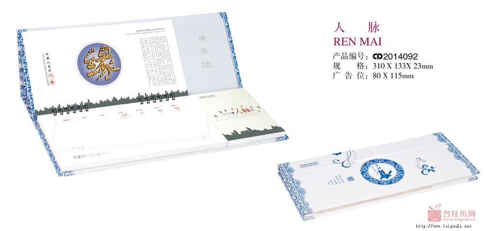 产品名称:人脉 大号青花便笺式记事周历